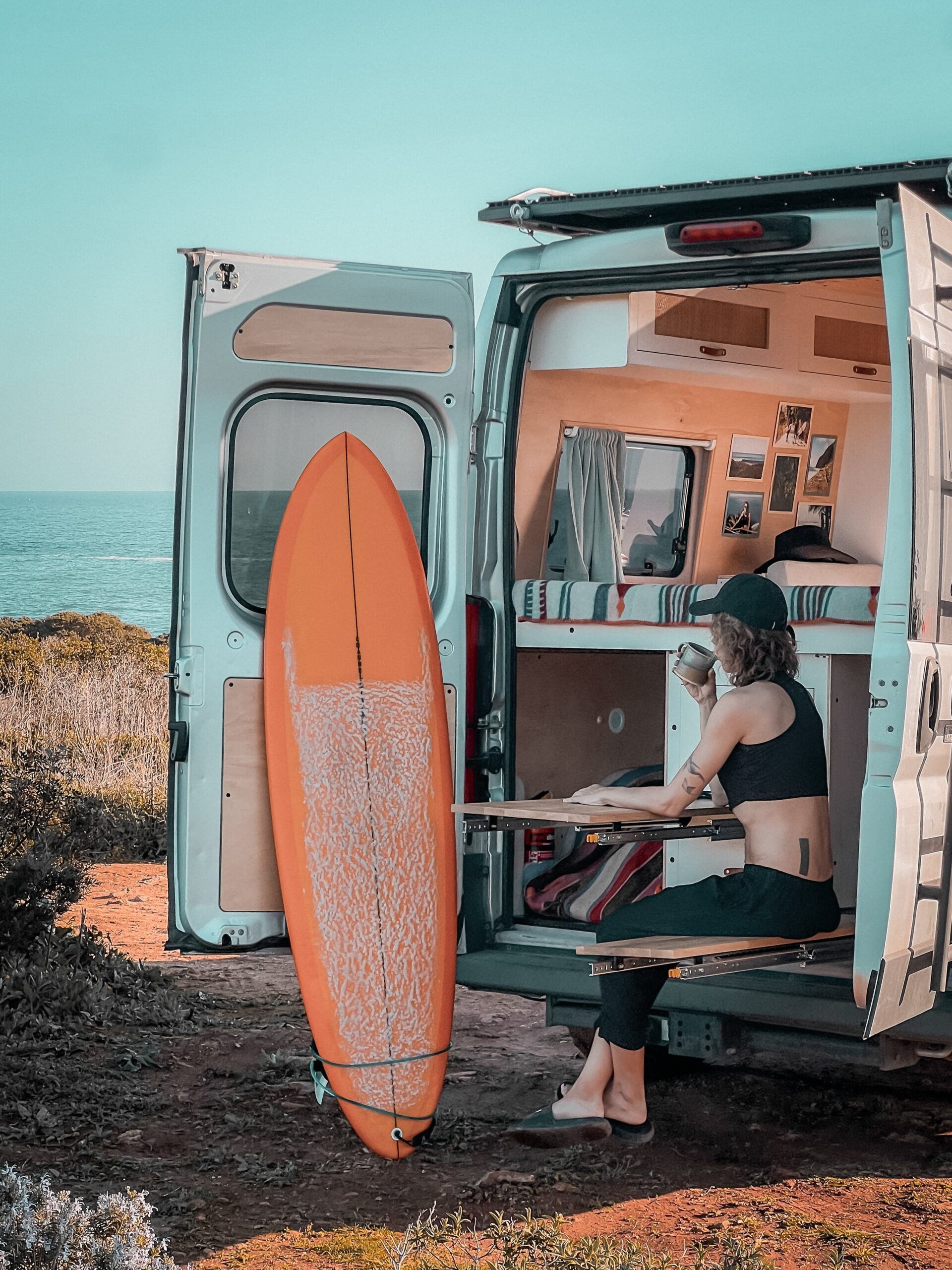 Dzień po odbiorze kampera Olga wyruszyła w podróż do Hiszpanii, a kilka miesięcy później mieliśmy okazję wspólnie surfować na pięknych plażach południowej Portugalii. To był niezwykły projekt, który przyniósł wiele radości zarówno nam, jak i właścicielce.
